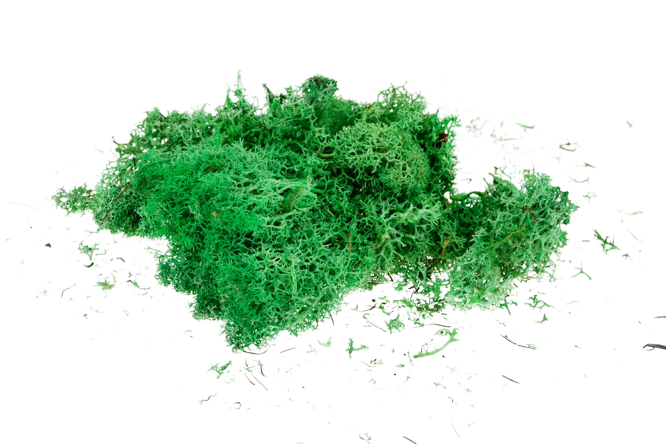 Stále oblíbenější mechové stěny ve skutečnosti „nepokrývá“ mech, ale lišejník, lišejník sobí. Je to úžasný druh z pomezí světa řas a hub, stromovitého tvaru a zachovává si zelenou atraktivní barvu i bez kontaktu se substrátem. Tyto vlastnosti byly použity k vytvoření modulů a dokonce i celých zelených ploch z těchto lišejníků.