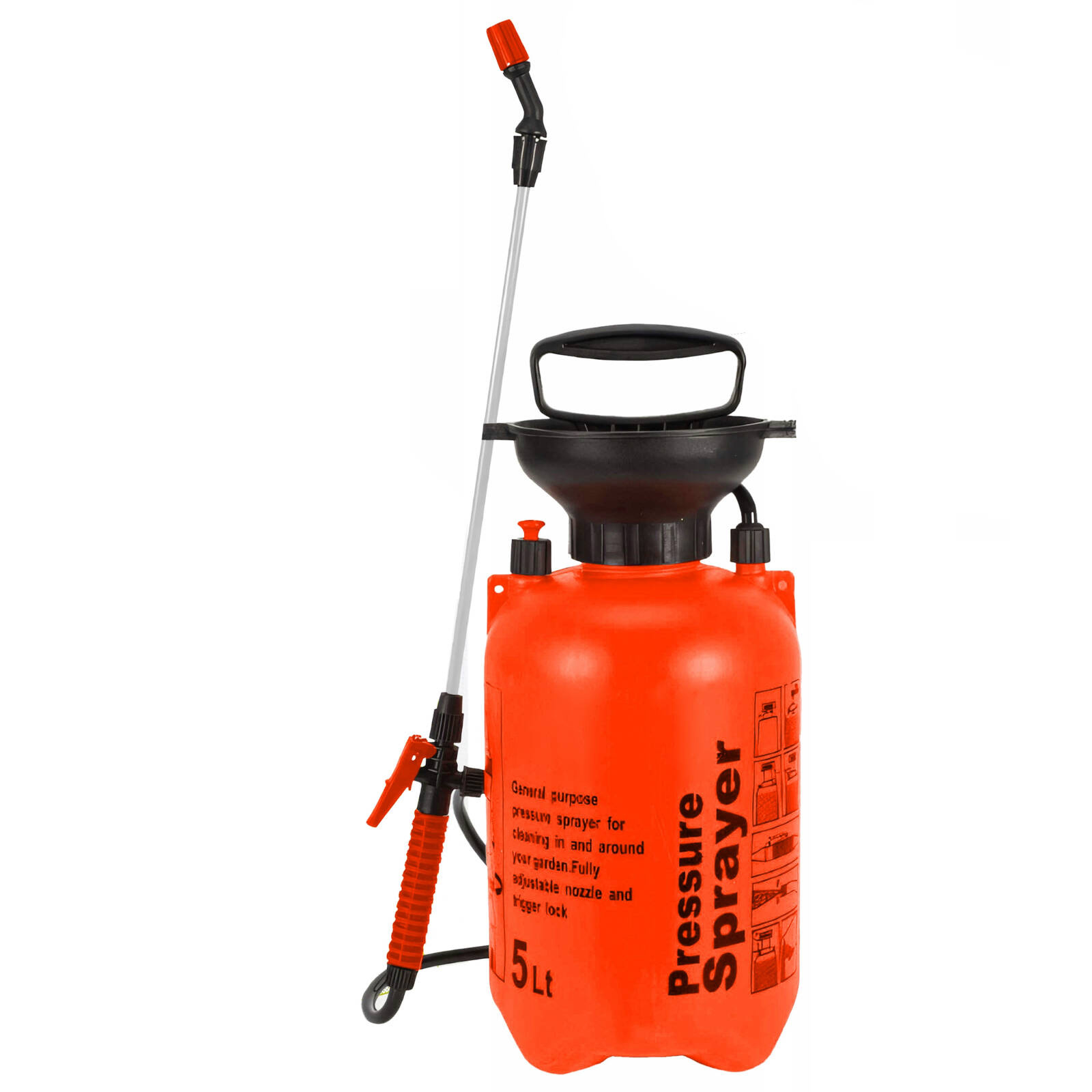 Tento tlakový postřikovač ocení každý spávný zahradník. Postřikovač je opatřen pojistným ventilem pro regulaci tlaku, dále šálkem pro snadné nalévání. Součástí tohoto postřikovače je také spouštěcí páka s aretací a nastavením. Postřikovač taktéž diponuje nastavitelnou tryskou.