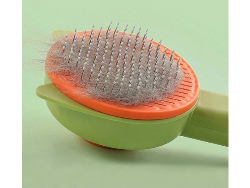 - Stisknutím tlačítka se mrtvé chlupy snadno uvolní z povrchu kartáče, což usnadňuje čištění.