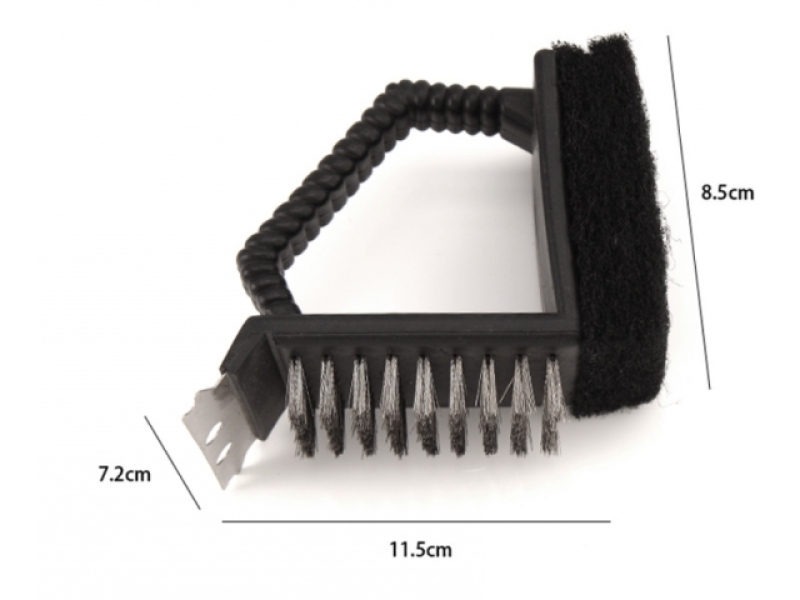Kartáč na čištění roštu nebo grilu má dvě čisticí plochy a škrabku. Krátká rukojeť poskytuje větší tlak při používání. Velmi praktický a užitečný kartáč pro milovníky grilování. Rozměry kartáče: cca 8 x 12,5 x 5,5 cm.