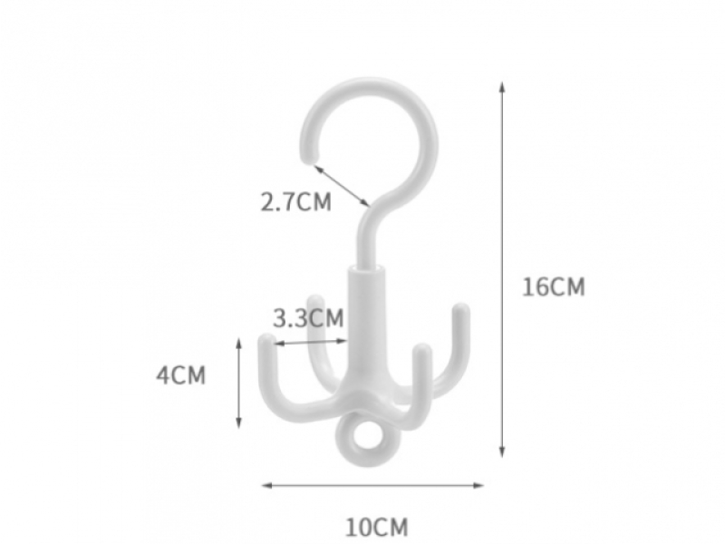 Praktický otočný háček do skříně na doplňky. Skvěle se hodí do pánské i dámské šatny. Má 4 ramena pro zavěšení doplňků. Otočná konstrukce zajišťuje pohodlné používání háčku. Vyrobeno z pevného plastu.