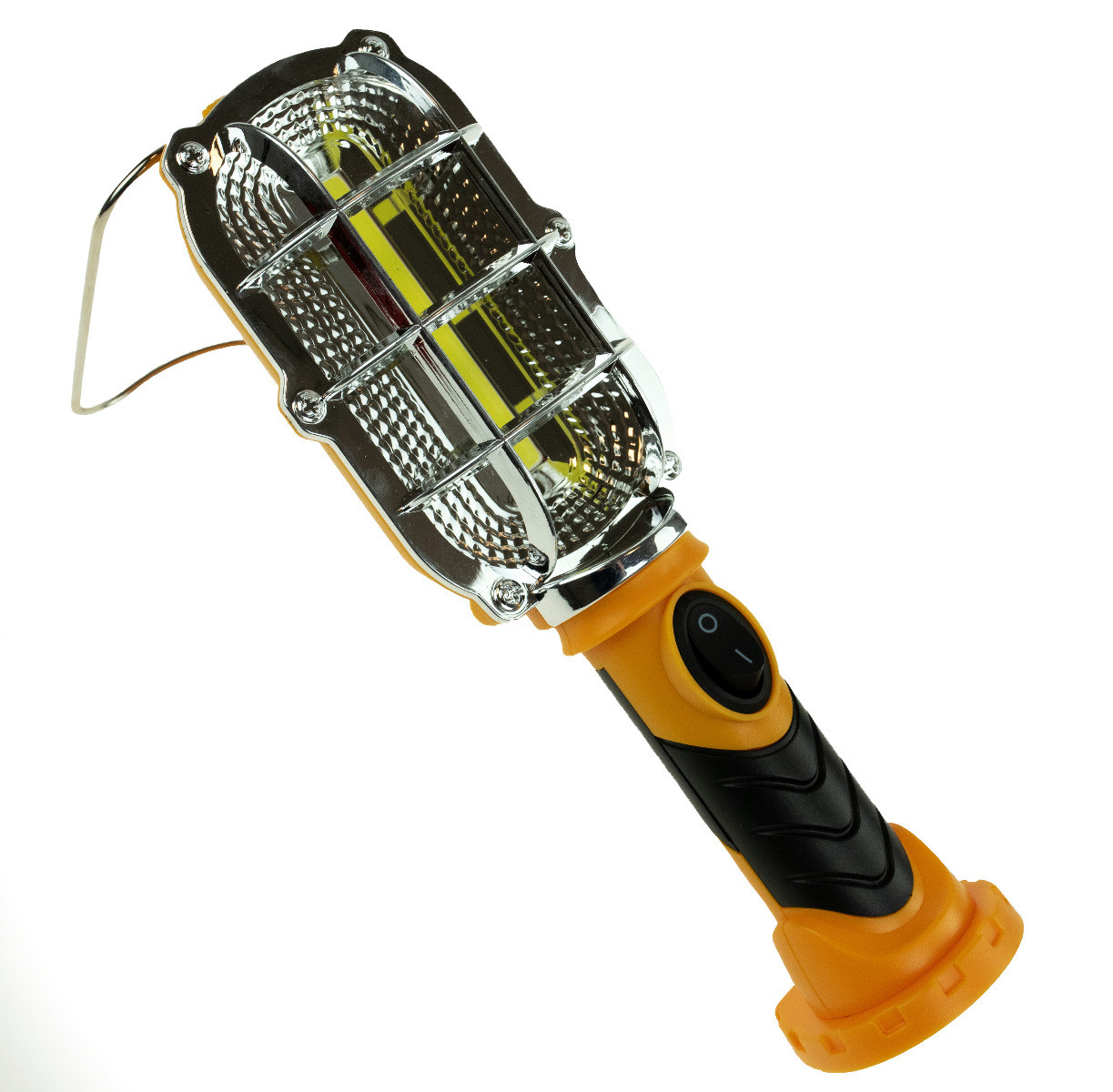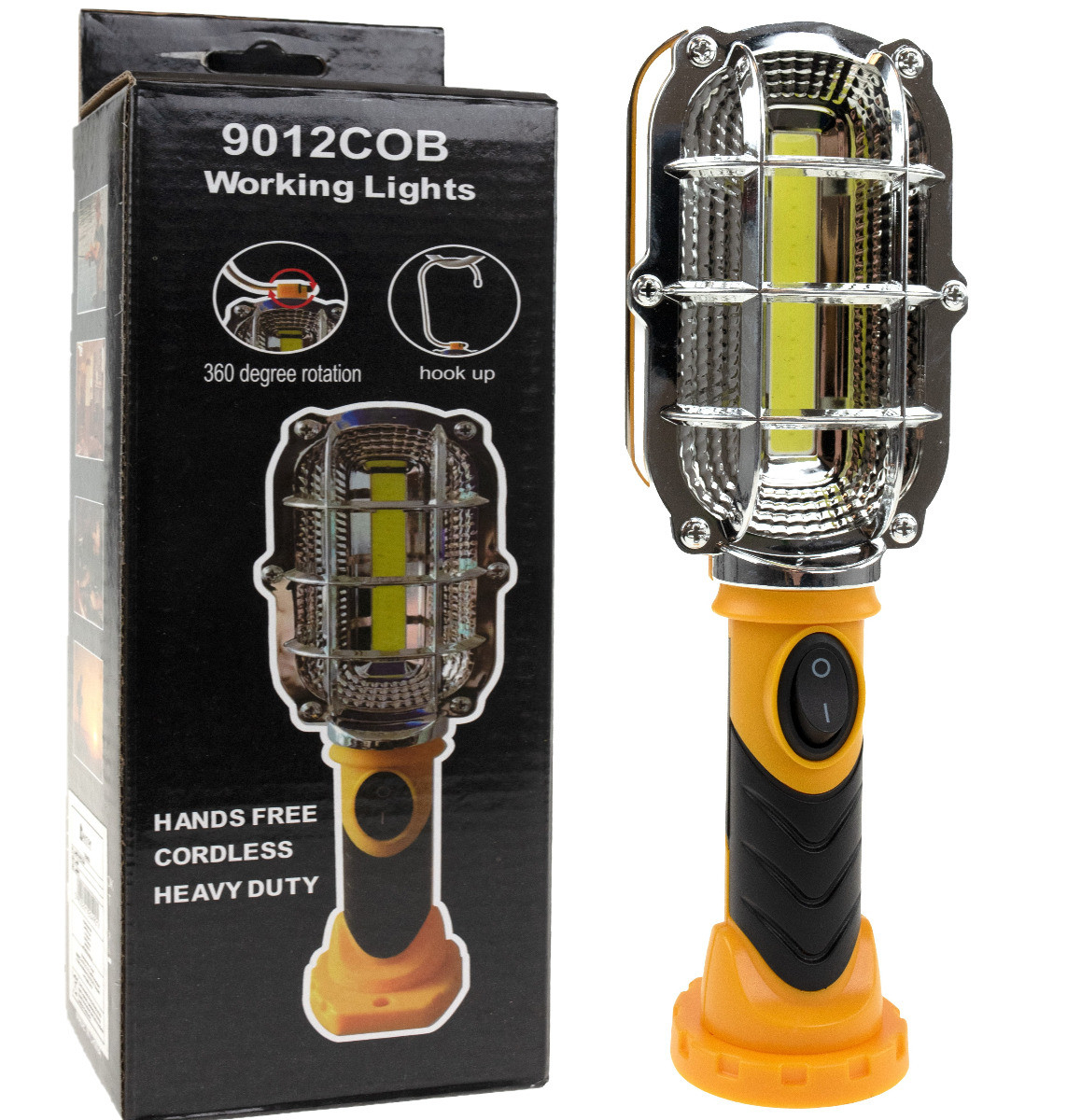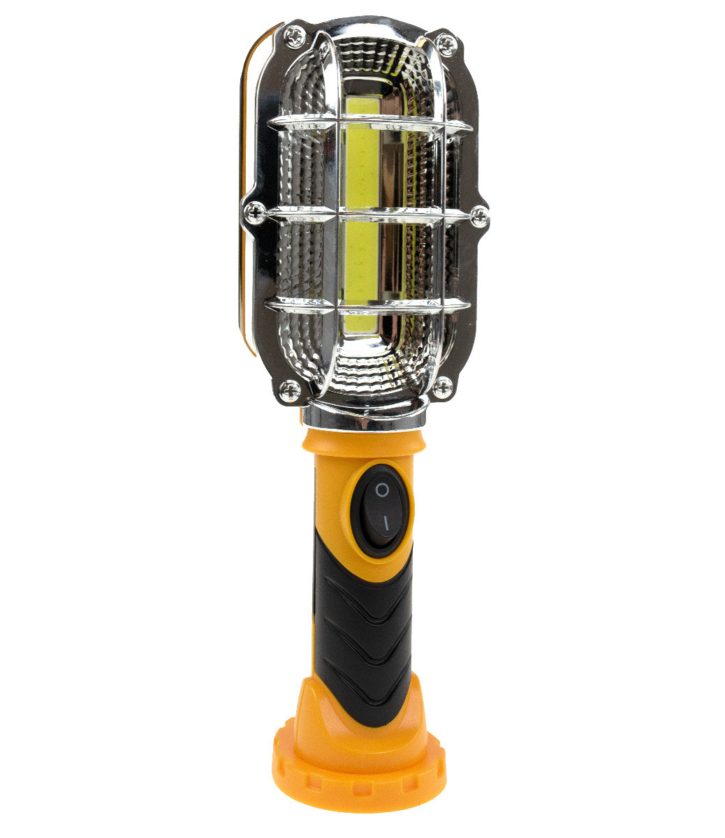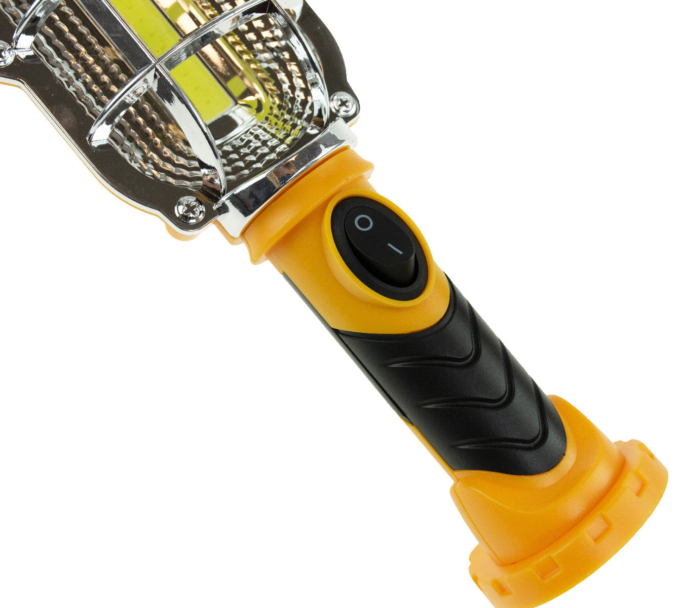 To ideální přenosné osvětlení pro dílny, garáže, servisy nebo pro každodenní použití, například pod stanem, na kempu nebo při domácích pracích. Je velmi pohodlné a praktické, a hodí se v každé situaci, kdy potřebujeme dodatečný zdroj světla. Skříňka je vyrobena z vysoce kvalitního protiskluzového materiálu, který zaručuje odolnost proti těžkým podmínkám používání a nárazům. Díky svému provedení a malé hmotnosti dobře sedí v ruce a je pohodlná na používání. Je vybavena silnými magnety, které jsou umístěny na nastavitelné základně a zadním krytu, což umožňuje připevnění k kovovým povrchům a snadné nasměrování světelného paprsku na správné místo. Má také otočný hák, na kterém lze lampu zavěsit, pokud není možné využít magnety. Lampa je vybavena vysoce kvalitní silnou LED diodou COB, která generuje silné, jasné a zároveň energeticky úsporné světlo.