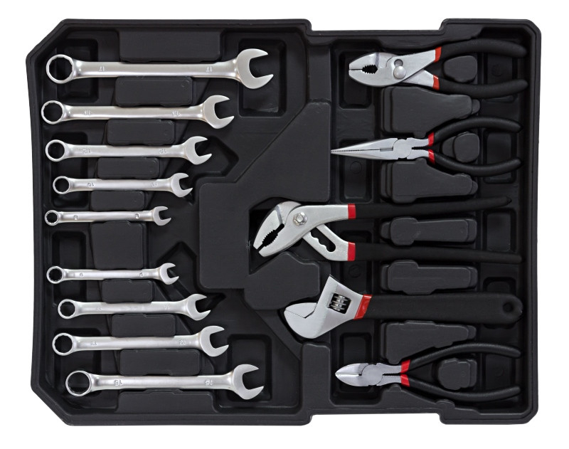 - Jednotlivé nástroje jsou uspořádány ve 4 praktických zásuvkách.