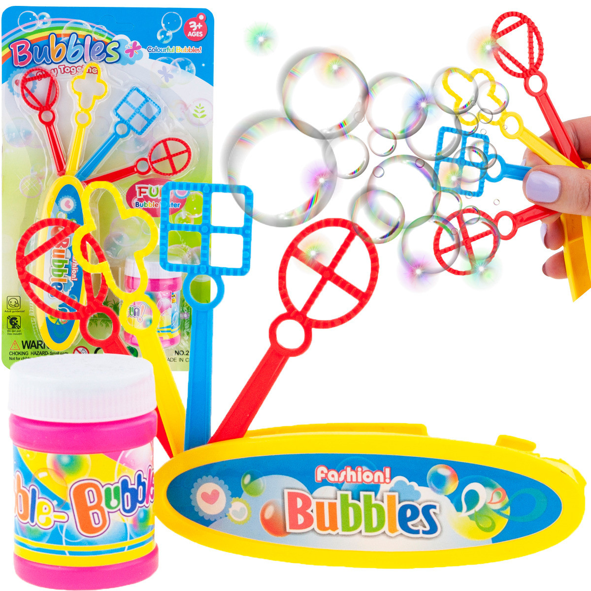 - Kruhový rám s různými koncovkami – vytváří nekonečné množství barevných bublin.