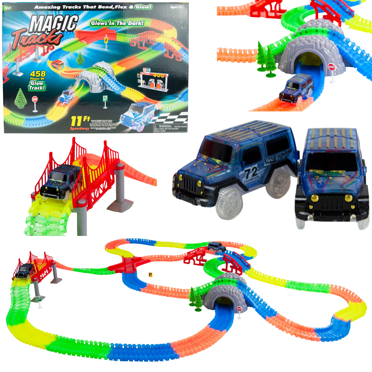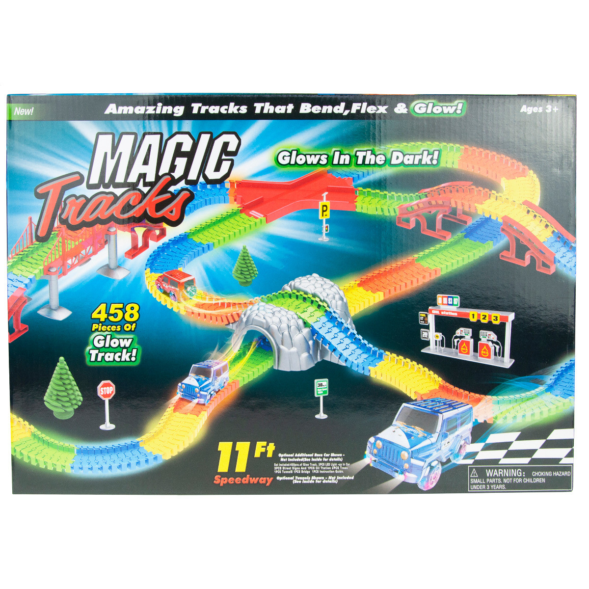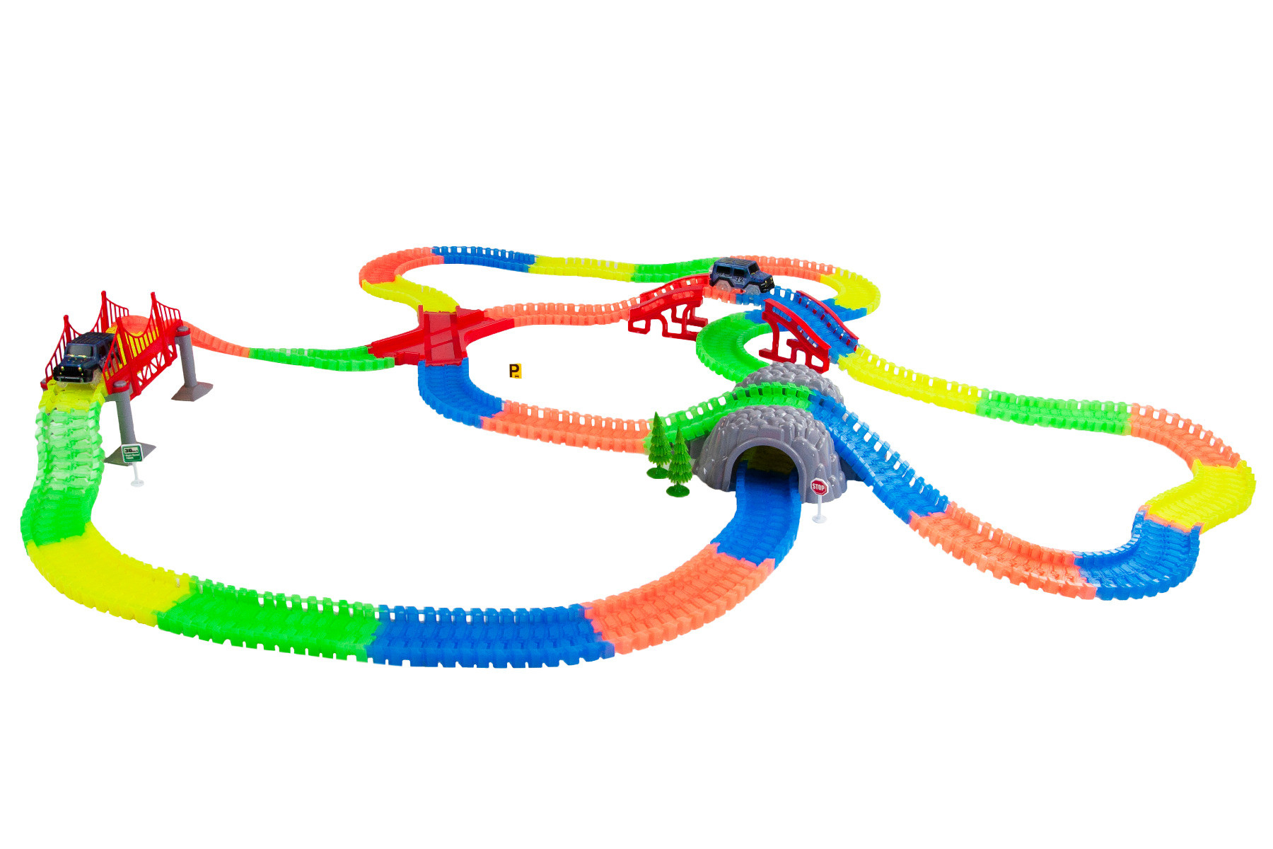 Neomezená kreativita! S Magic Tracks se nebudete nikdy nudit. Dítě si může samo modelovat trať, vytvářet smyčky, zatáčky, serpentiny, spirály a skokánky – autíčko si se vším poradí! Jakmile je trať hotová, zhasněte světlo a sledujte kouzelnou jízdu!