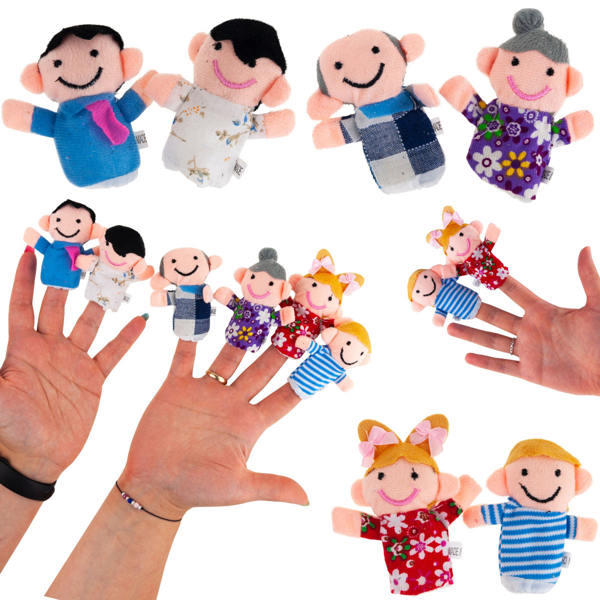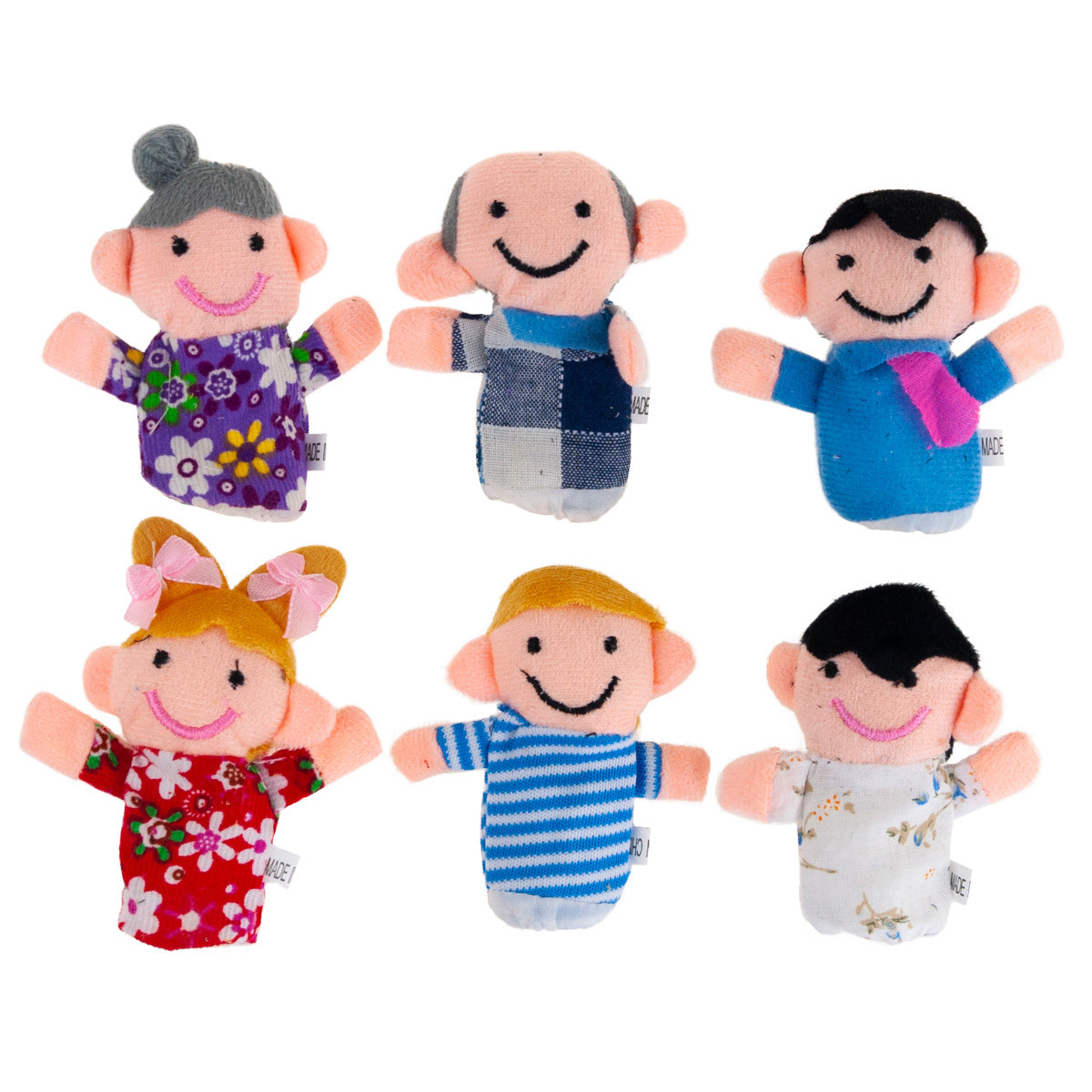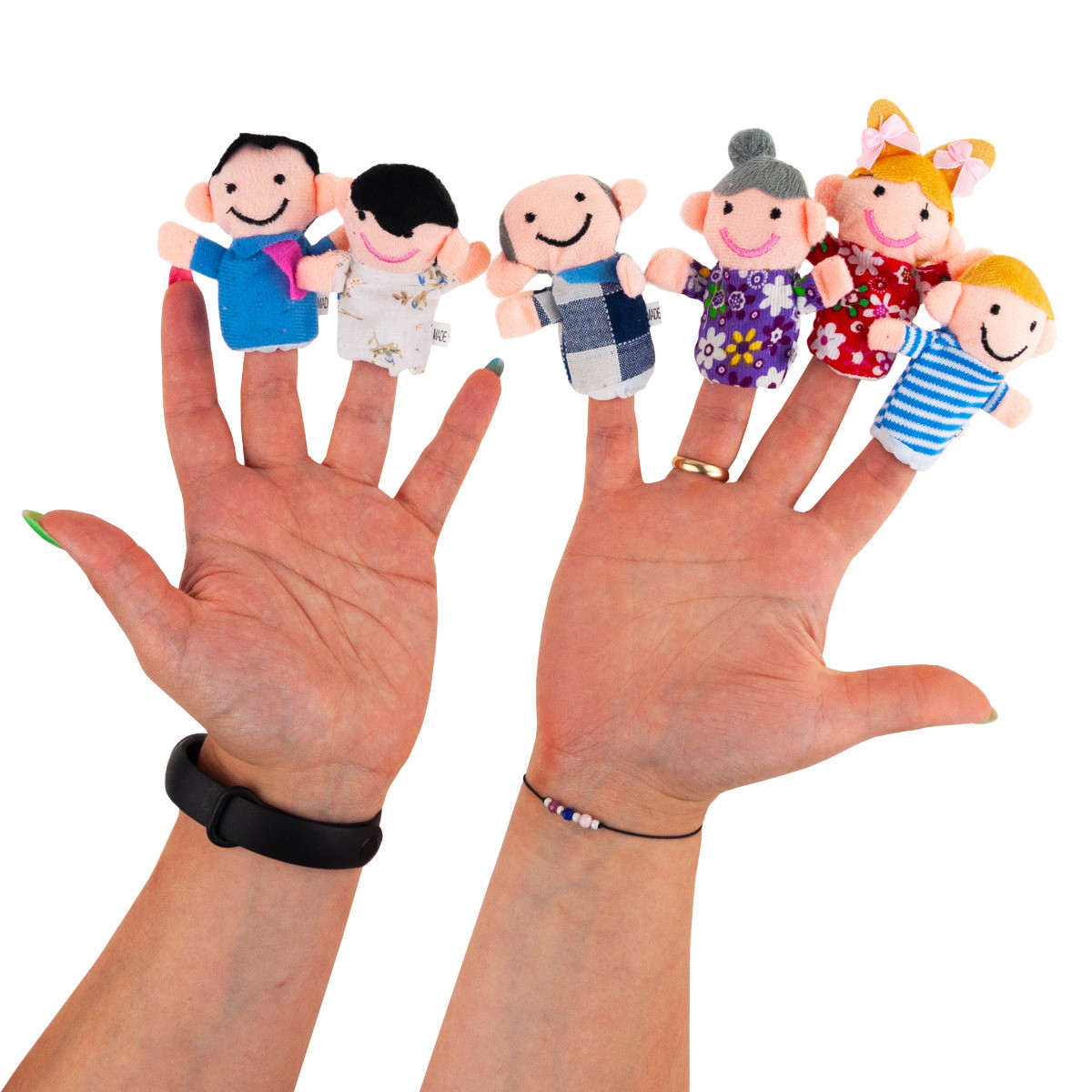 Sada obsahuje 6 roztomilých prstových loutek, které se snadno nasadí na každý prst. Použití více prstů zvyšuje atraktivitu hry, činí divadélko zajímavějším a umožňuje rozvoj příběhů. Loutky lze používat nejen na ruce, ale také například na tužce nebo pastelce. Součástí sady jsou postavy rodiny: maminka, tatínek, syn, dcera, dědeček a babička.