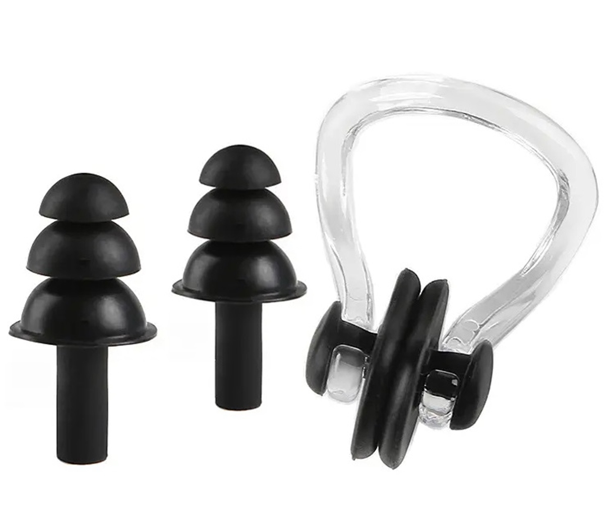 - Pohodlné plavecké brýle se špunty do nosu a uší.