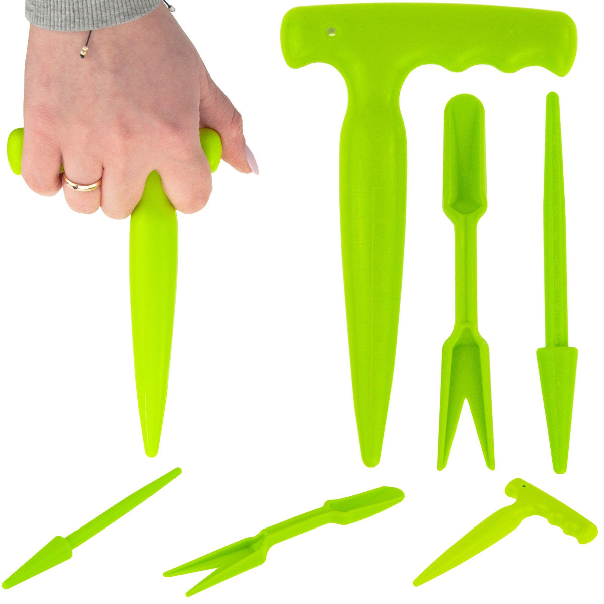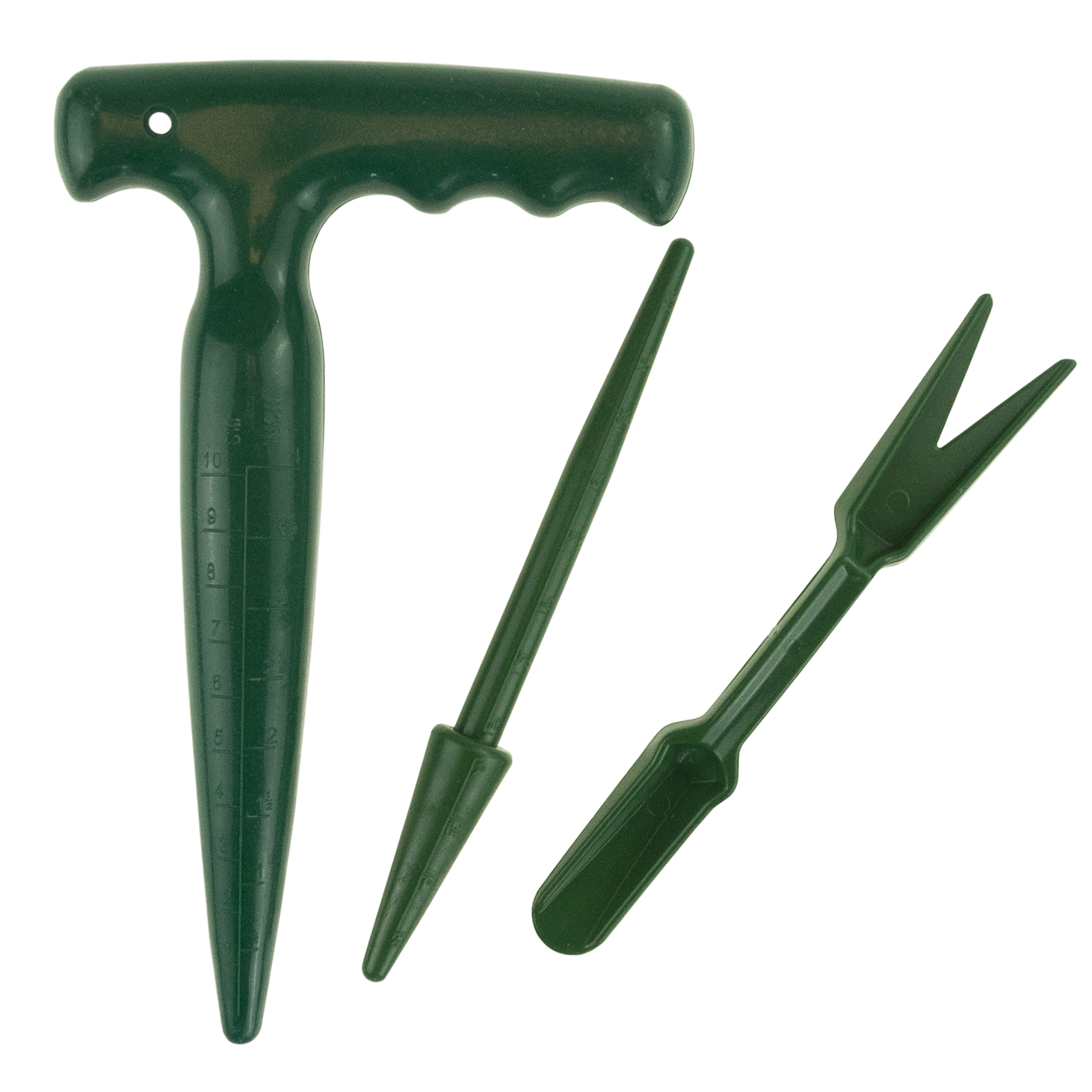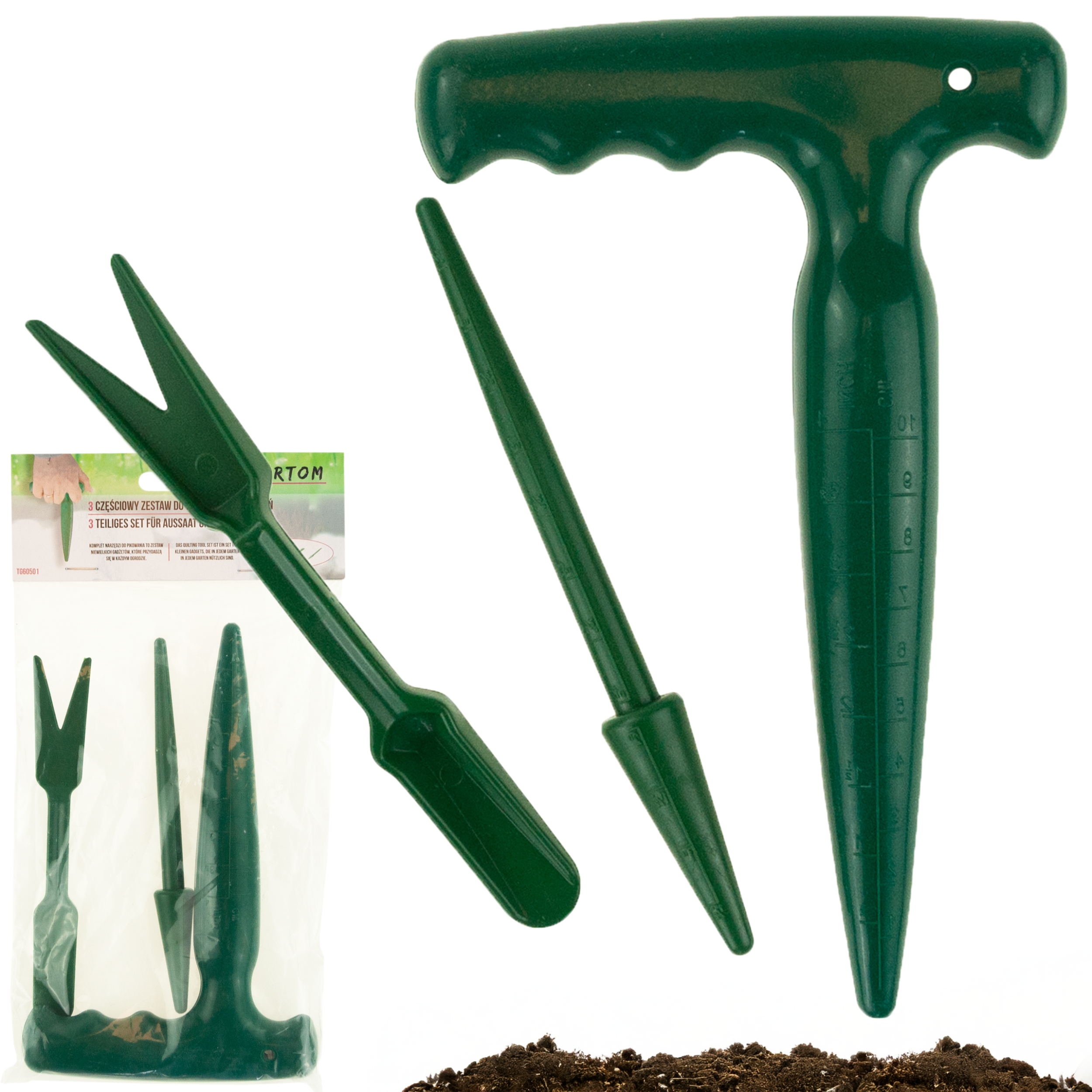 Tato sada je složena z drobných pomůcek, které se budou hodit na každé zahradě. Usnadní práci každému, kdo sám vysévá semena a pěstuje sazenice zeleniny nebo květin. Budou nepostradatelné při výsevu semen, pikýrování a sázení. Díky nim bude práce vyžadující velkou přesnost a jemnost provedena rychle a efektivně, aniž byste si ušpinili ruce.