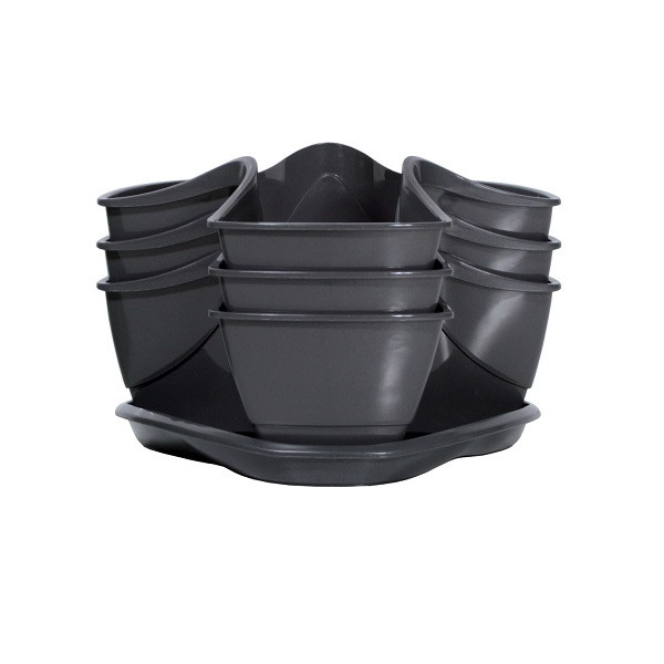- Díky speciálním prohlubním na dně lze rozdělit na tři samostatné květináče.