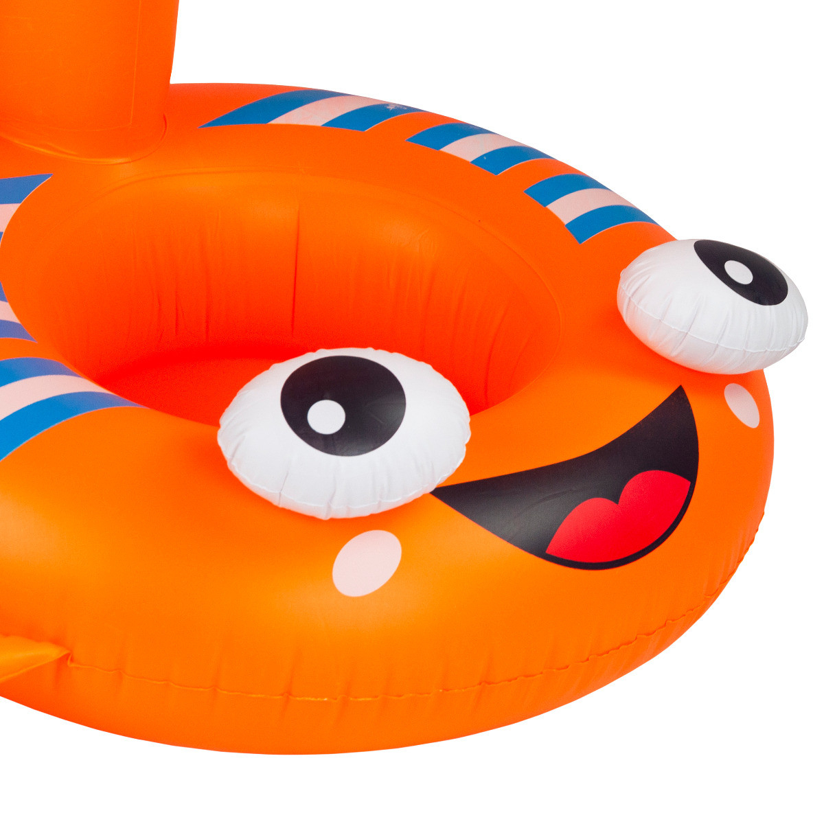 Je vyroben z kvalitního PVC plastu a díky svému originálnímu tvaru ji budou děti rády používat. Kruhbje ideální pro výuku plavání a zároveň poskytne dětem stín v horkých dnech. Je určen pro naše nejmenší děti, má otvory pro nohy, což je další výhoda a bezpečnost používání tohoto kola.