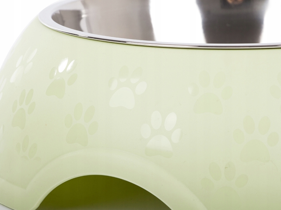 Miska se skládá ze dvou částí. Základna je vyrobena z plastu a vložka je vyrobena z oceli. Mísu lze použít jako celek, ale v případě potřeby ji lze rozložit a použít jako dvě samostatné misky.