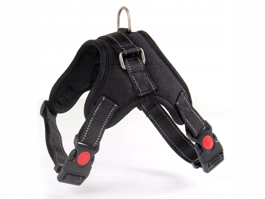 Popruh postroje je prošitý reflexními nitěmi, díky čemuž je pes po setmění viditelnější, což se promítá do větší bezpečnosti pro našeho mazlíčka. Postroj je vybaven pevným klipem na vodítko a madlem, aby majitel mohl držet zvířátko.