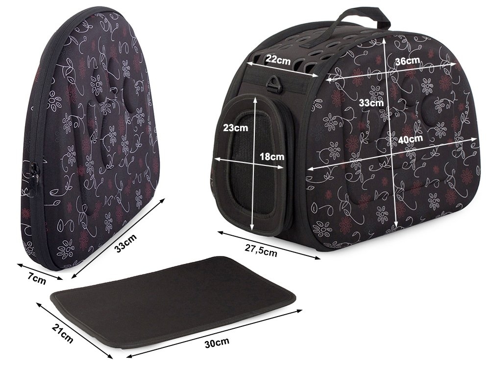 Má také účinný systém větrání pomocí otvorů. Taška má dva zipy, které umožňují její rychlé otevření nebo zavření, abyste do ní mohli svého mazlíčka pohodlně umístit. Když se nepoužívá, lze ji složit do malých rozměrů.