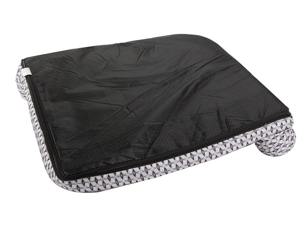 Pelíšek se snadno udržuje v čistotě – základna i opěrka jsou opatřeny zipem, což umožňuje vyjmout vnitřní pěnovou výplň a potah jednoduše vyprat.