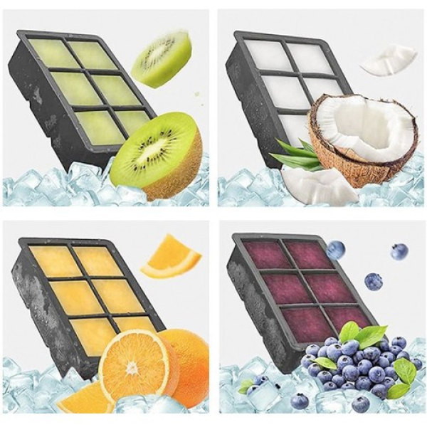 - SILIKONOVÉ FORMY S UPEVŇOVACÍMI VÍČKY – silikon je odolný, praktický a extrémně pohodlný na používání. Navíc dokáže překvapit svým tvarem, tvarem a barvou a vnese do naší kuchyně mnohem více fantazie a netradičních nápadů. Součástí sady jsou také těsně přiléhající víčka se speciálními okraji, které zabraňují rozlití tekutiny a zajišťují rovnoměrnost kostek a kuliček.