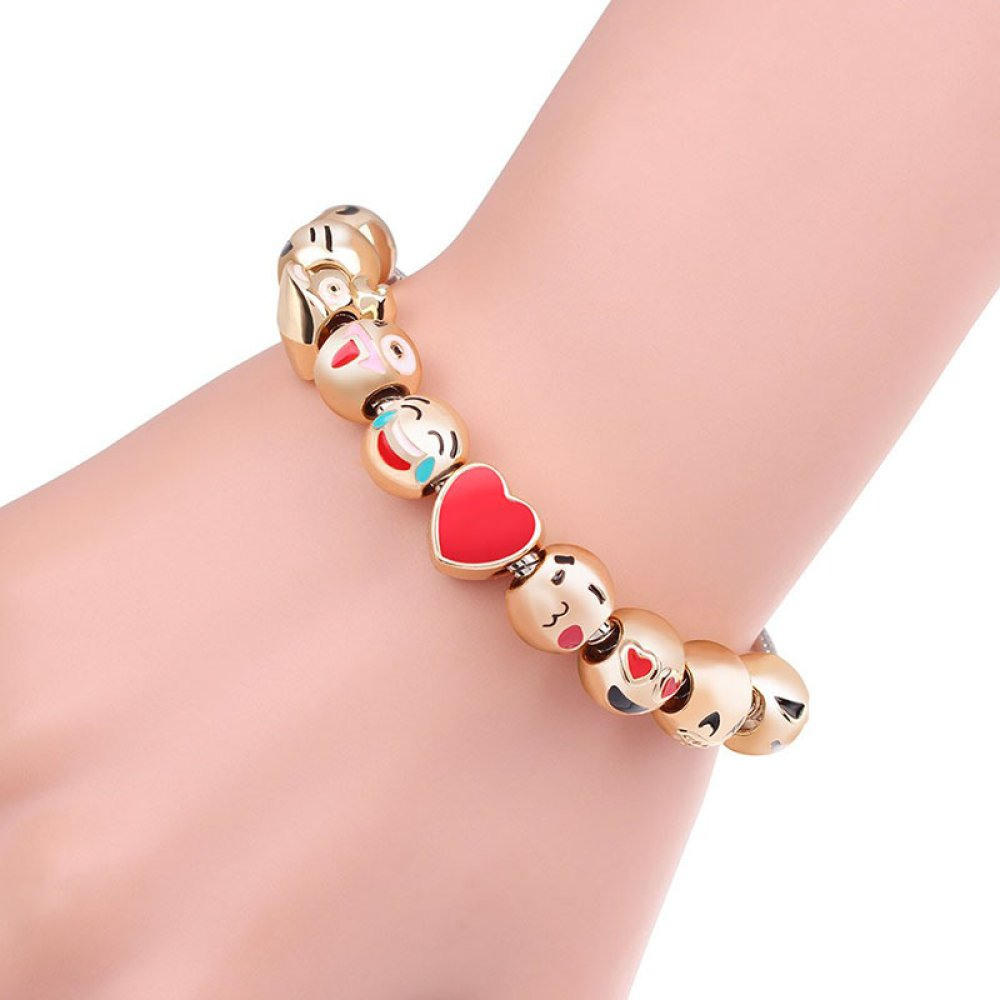 Tento pozlacený náramek je ideální variantou pro ty, jenž chtějí potěšit příkladně svou drahou polovičku. Náramek je elegantního designu doplněn o 10 kusů přívěsků v podobě různorodých emotikonů, což nejen potěší, ale současně i vykouzlí úsměv na tváři.