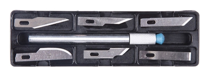 Sada nožů pro přesné ořezávání. Velmi užitečné například při modelářské práci.