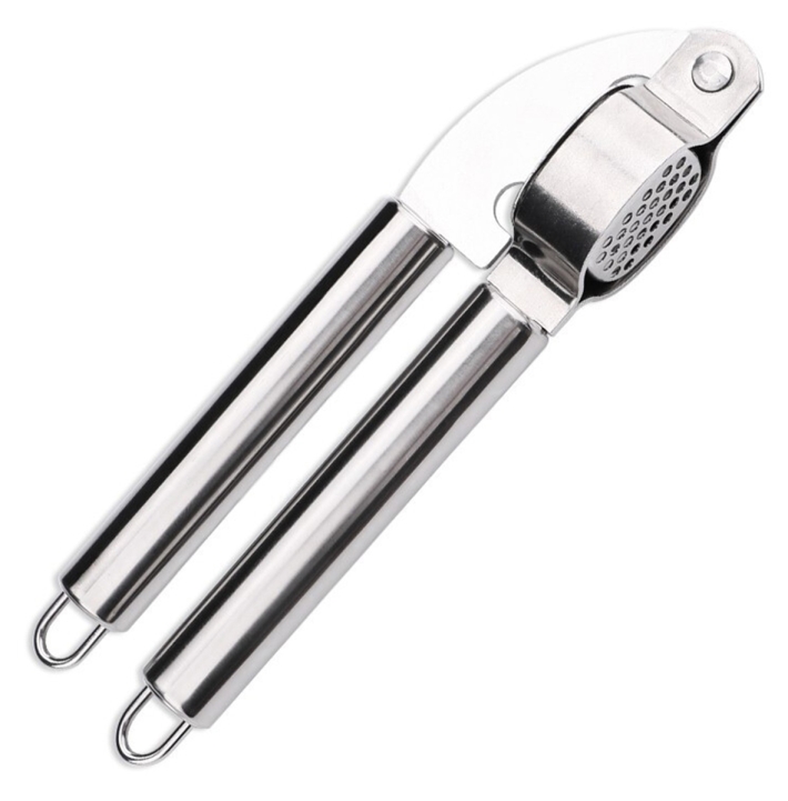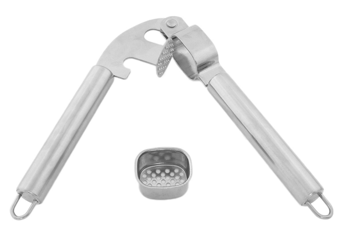 Kompaktní lis na česnek z nerezové oceli. Dokonale lisuje česnek, zázvor nebo i kousky sýra a čokolády. Pohodlná rukojeť s přídavnými závěsnými poutky. Snadné použití a údržba.