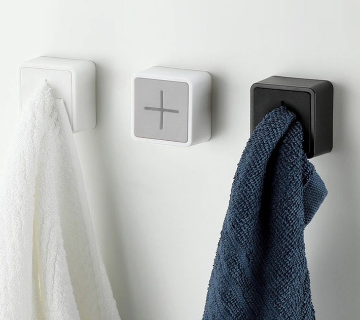Pevný nástěnný věšák - samolepící. Extrémně univerzální - bude perfektní jako klasický koupelnový věšák. Je velmi odolný – po nalepení pevně drží na stěně. Věšák je odolný vůči nepříznivým povětrnostním podmínkám (lze použít i ve venkovních podmínkách) a kontaktu s vodou. Silikonová vložka slouží k zatlačení okrajů ručníku dovnitř - znesnadňuje odpadnutí jako u klasického háčku.