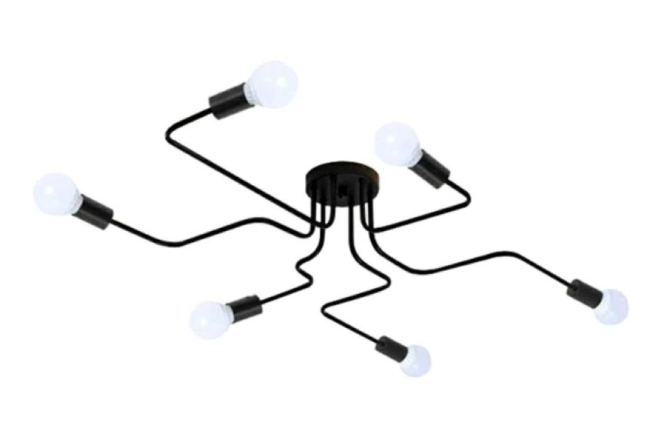 Skvělý dekorativní prvek - lustr s až 6 světelnými body! Všechny světelné body jsou zakončeny standardním žárovkovým závitem - E27. Je to skvělý nápad, jak vyzdobit elegantní pokoje ve stylu loft nebo rozzářit tmavé kouty! Skvěle se hodí jak ke klasickým kulatým žárovkám E27, tak k jakýmkoli dekorativním se stejným závitem!