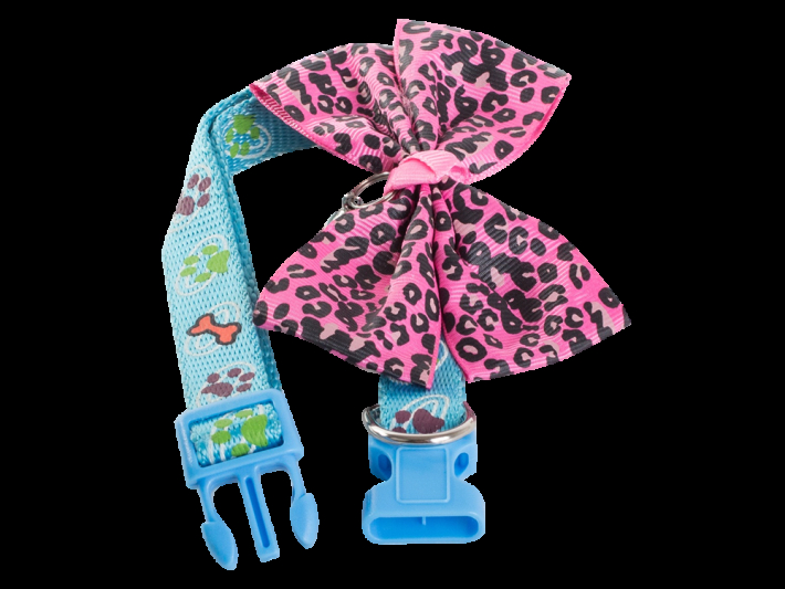 Chcete mít přehled, kde se zrovna váš čtyřnohý mazlíček pohybuje? Pokud ano, tak mu pořiďte tento roztomilý obojek, který má nejen mašličku na přední části, ale také rolničku, díky které vždy budete vědět, kde se právě váš domácí mazlíček pohybuje. Obojek je velikostně nastavitelný, jeho maximální délka je 37 cm, šířka obojku je 1,5 cm a zapínání zajišťuje plastová spona.